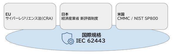 これらの法規制や標準化の動きは、国際的な制御システムセキュリティ規格である「IEC 62443」と密接に関連しています。この規格は、後述するように、製品やシステムの技術的な堅牢性(セキュリティレベル:SL)と、開発/運用する組織の成熟度(マチュリティレベル:ML)の両面からセキュリティを定義しており、グローバルなルール形成における重要な参照点となっているのです。