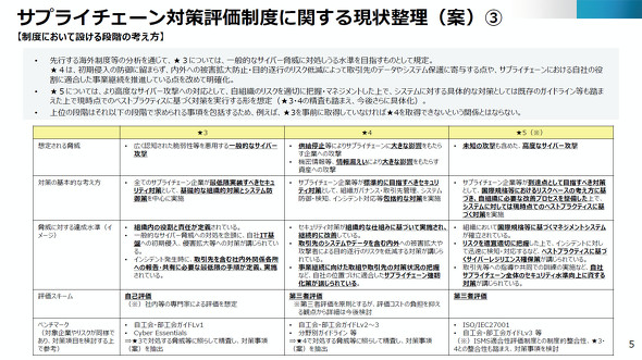 経済産業省は、「サプライチェーン強靱化に向けたサイバーセキュリティ対策評価制度(仮称)」の創設準備を進めており、2026年度の開始を目指しています。この新制度は、企業のセキュリティ対策状況を客観的な指標で評価し、3つ星、4つ星、5つ星といった星の数でランク付けするというものです。