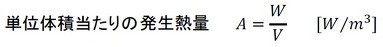 発生熱量および単位体積当たりの発生熱量は、以下の式で表されます。