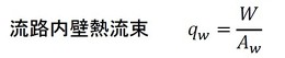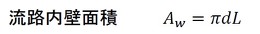 流路内壁の面積および熱流束は、次の式となります。
