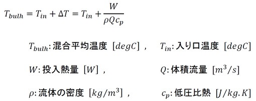 混合平均温度は式10により算出されます。得られた混合平均温度が、当初の想定使用温度と懸け離れていた場合は、想定使用温度をこの値(ここで計算した混合平均温度の値)に更新して計算をやり直します。