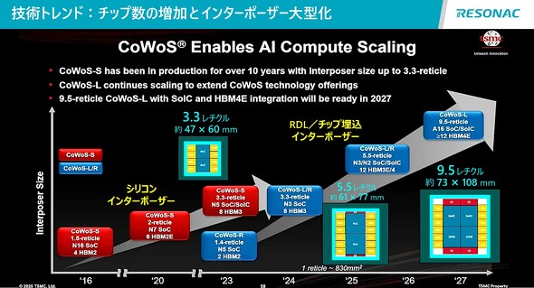 これらの要因により、シリコンインターポーザーから、有機材料を用いた有機インターポーザーへの移行が進んでいる。