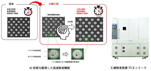 テクノホライゾンは、X線検査装置「TI-X」シリーズに、AIによる高速検査が可能なオプション機能を搭載した。長時間の撮影が前提だったCT検査で、撮影時間を抑えながら検査に必要な画像品質を確保できる。