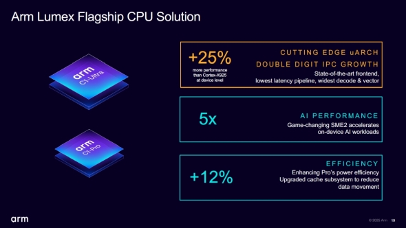 Lumex CSSそのものは、TCSやCSS for Clientと同様にCPUとGPU、システムIPをパッケージにしている点では変わらないものの、それぞれのIPの性能はこれまでと同様に大幅な性能向上を果たしている。