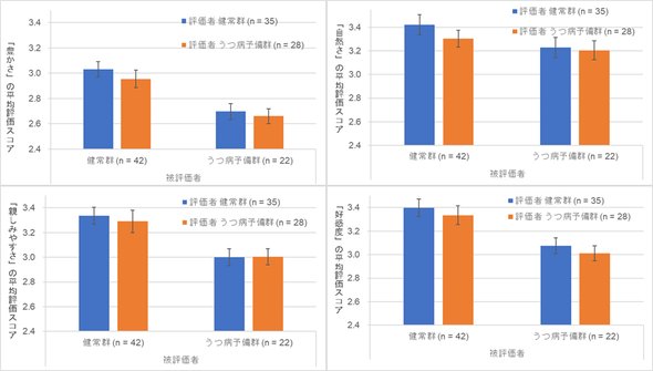 研究対象は日本人大学生64人で、自己紹介動画を収集し、63人の評価者が印象を判定した。その結果、抑うつ傾向を持つ大学生は、「豊かさ」「自然さ」「親しみやすさ」「好感度」の評価が低い傾向にあった。