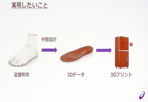 パーソナライゼーションに強みを発揮する3Dプリンタを活用すれば、アスリート個々の足形に合わせた製品を作ることが可能になる。しかし、現時点では靴全体を3Dプリンタで製造するには課題が多い。そこでアシックスは、まず中敷き(インソール)のパーソナライズ設計に着手した。