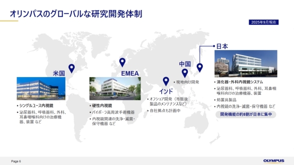 オリンパスは2025年9月25日、東京都内で会見を開き、同社 執行役 CTOのサヤード・ナヴィード氏が登壇して、「OLYSENSE」「エンドルミナルロボティクス」「シングルユース内視鏡(SUE)」の3領域を重点プロジェクトとする中長期の技術戦略について説明した。今後3〜5年で、これら3領域の新製品を市場投入していく方針である。