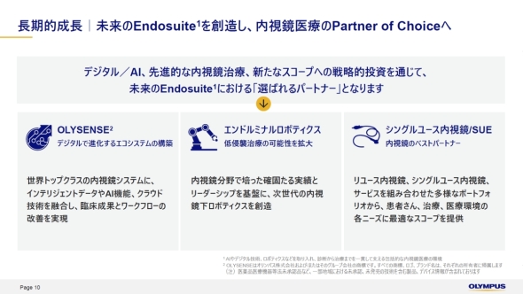 ナヴィード氏は「ただし、シングルユース内視鏡はオリンパスの主軸であるリユース型内視鏡の事業を補完する位置付けとなる」と述べている。