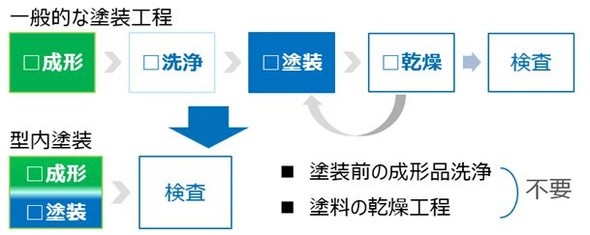 成形と塗装が同時でタクトタイム短縮、型内塗装成形システムを共同開発