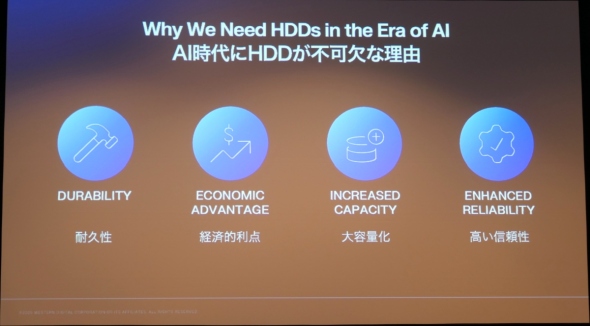 なお、2026年の容量36TBのHDDは現行のePMR(エネルギーアシスト垂直磁気記録)を採用するが、2027年の容量44TBからは次世代技術のHAMR(熱アシスト磁気記録)に移行する方針である。タン氏は「技術としてのHAMRの開発は既に完了している。当社として重視しているのは、顧客が求めている高い耐久性と品質、信頼性をHAMRで確保するとともに、四半期に100万台のレベルで量産できるようにすることだ」と強調する。