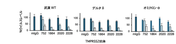 理化学研究所は、新型コロナウイルスの感染侵入に必要なヒト酵素TMPRSS2を狙ったモノクローナル抗体を開発した。実験では、全ての変異株で感染を阻止できることが示された。