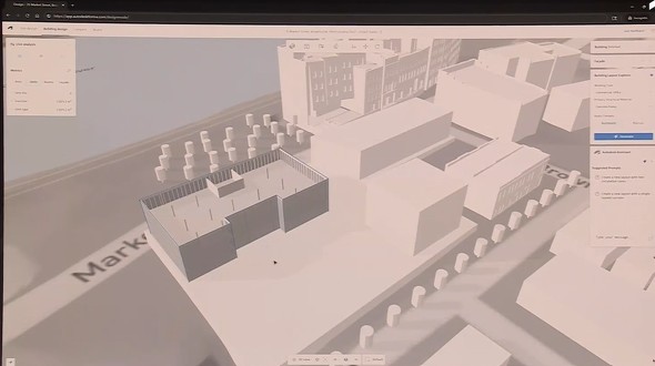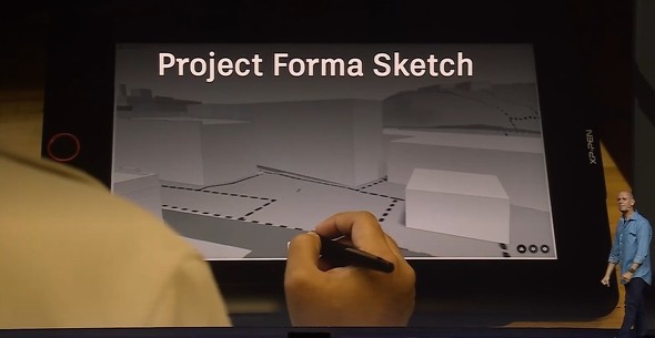 1つ目は、Formaにおける建築ブロッキング支援機能である。これは、建物の基本形状をスケッチや音声で素早く定義できる支援機能であり、デザイナーが“通常の3Dツールに縛られず”、最も自然な方法――タブレット端末を片手にデジタルペンでスケッチし、声で指示する――を取ると、ニューラルCAD基盤モデルが大規模言語モデルと連携して入力を解釈し、Forma内の適切な建物形状に変換する。「ペンを取り、描き、話すだけだ。これほど自然なことはない」とヘイリー氏は語った。