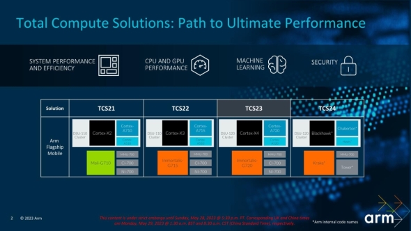 これらをさらに進めたのがTCS(Total Compute Solution)である。TCSでは複数のCPUとインターコネクトをひとまとめにした形で提供されるようになり(図5)、顧客はさらにSoCの構築が容易になった。ただし、TCSはモバイル向けのみという形で、あまり一般的なソリューションではなかった。これを他の分野にも拡大したのがCSSというわけだ。