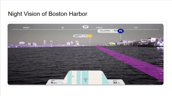 夜間航行においても、赤外線カメラと機械学習モデルの組み合わせで昼間航行と同等の障害物検出を可能とする(実際の視認性は艤装[ぎそう]や環境に依存)。説明会では横浜港やボストンでの実証航海における実撮映像も交え、暗所での“見える化”が導入の決め手になると強調した。