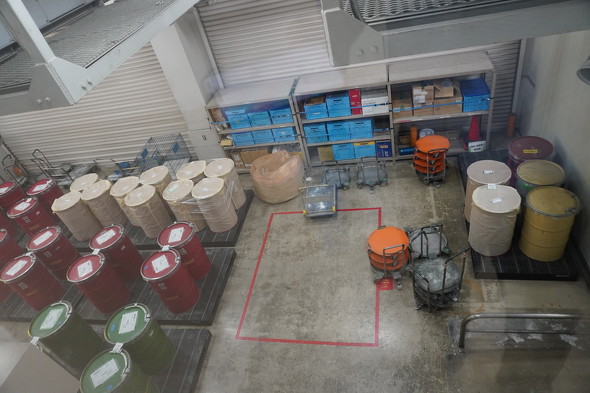 太陽ホールディングス 社長室 広報/ブランドマーケティング課の白鞘柚美氏は「原材料受け入れを行う部屋には、常温では化学反応が進んでしまう原料を保管する冷蔵庫も備えている。また、当社のソルダーレジストインキ製品は約300種類あり、手作業での原料管理は難しい。そこで、識別用バーコードを用いることにより、各ソルダーレジスト製品に適した原料を使えるようにしている」と話す。