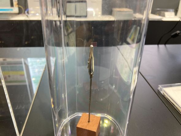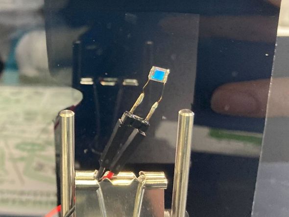 コンタクトレンズ内に映像を映すためのバックライトには、厚さ0.076mmの超薄型レーザーバックライトの搭載を検討しており、ここに空間光変調器を組み合わせることで光を反射させてホログラフィー映像を表示させようと研究を進めている。また、展示ブースではホログラム表示に使用する厚さ0.1mmの表示デバイスも披露した。
