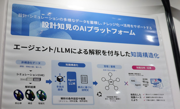 整理されたデータベースを参照することで、一般的な生成AIを経由してユーザーが自然言語で質問しても、最適な設計に関する知見や過去のシミュレーション結果などを簡単に探し当てられるようになる。「過去の知見や類似知見の検索スピードが大幅に高まるとともに、仕様書などのフォーマットに合わせた形で出力することも可能で、設計リードタイムの大幅な短縮につながる」(担当者)とする。