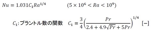 式14は、レーレー数が5×106<Ra<109の範囲における方程式とします。