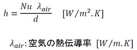 式4およびヌセルト数の定義から、熱伝達率は式11で表されます。
