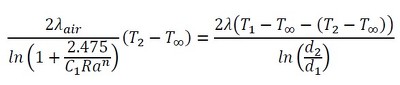 続いて、レーレー数が5×106<Ra<109の範囲の方程式を作成します。式5とヌセルト数の定義から、熱伝達率は式13で表されます。