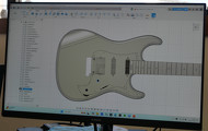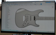 従来、こうしたパーツのレイアウトは、職人が実際のボディー上で物差しを当てながら位置を測り、手作業で穴開け加工を行っていた。わずかなズレが音や弾き心地を左右することも多かったが、3D CAD上で設計することで誤差を最小限に抑えられるようになった。