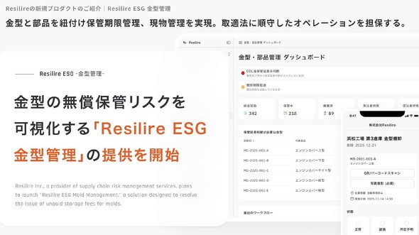 また、下請け企業に対する法的強化が年々進む中で、サプライヤーに在庫として無償で金型を持たせている企業が問題になっている。この問題を解決するために金型と部品をひも付けて保管期限/現物管理可能なサービス「Resilire ESG 金型管理」も同年4月頃に提供開始予定である。