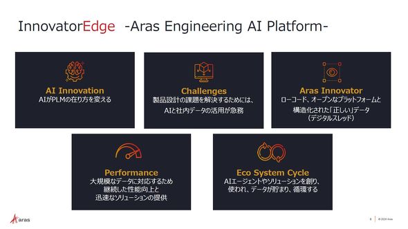 アラスジャパンは2026年度の戦略方針について発表した。同社はAIとPLMシステムを融合させた「Aras Innovator Edge」を2026年度から提供を開始し、エンジニアリング支援を進めていく。