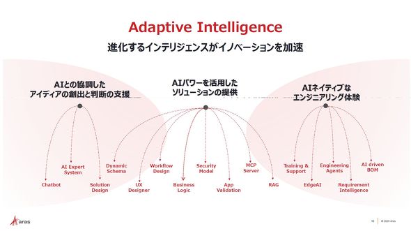 同社では「Adaptive Intelligence」というキーワードにのっとり、「AIと人が協調しアイデアの創出と判断の支援」「AIネイティブなエンジニアリング体験」「AIパワーを活用したソリューションの提供」の3つの軸でサービスを進化させていく。