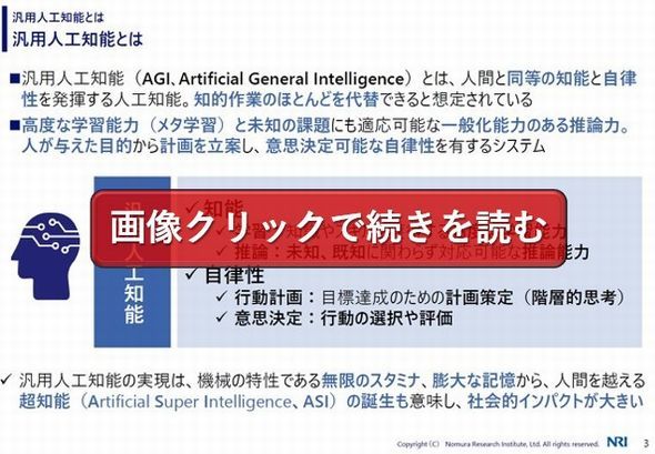 NRI デジタルトラスト基盤事業本部 IT基盤技術戦略室 チーフストラテジストの長谷佳明氏は「汎用人工知能とは、人間の思考をそのまま再現するのではなく、人間と同等の効果を発揮するAI(人工知能)である」と捉えている。(2026年4月6日公開)続きを読む