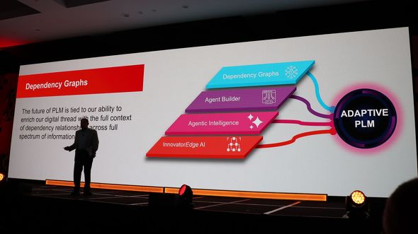 依存関係グラフはこの問題を解決する。システム上で「もしも」のシナリオを実行し、設計変更の潜在的なリスクを予測可能だ。同グラフを活用することで、Adaptive PLMは“単なるシステム”からデータに基づく“予測システム”へと進化できる。