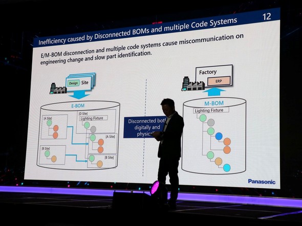 同社ライティング事業部では、BOM(部品票)とアイテムコードを標準化することで、情報源の単一化を実現している。以前まではE-BOMとM-BOMの間で情報の断絶があり、データの不整合や製造拠点間でのズレを生み出していた。ここに異なる部門間で複数のアイテムコードが存在しているという状態が組み合わさり、設計変更時のコミュニケーションミスや不具合要因の特定に時間を要していた。