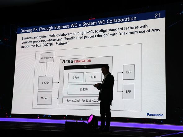 パナソニック エレクトリックワークスの電材&くらしエネルギー事業部では、ビジネスプロセスを変革しながらレガシーシステムから次世代PLMシステムへの移行を進めており、2026年9月に本稼働を予定している。システム移行期間が限られている中、同社はビジネス側とシステム側のワーキンググループ間で強力な連携フレームワークを確立し、全てのアクティビティーをPXと整合させた。