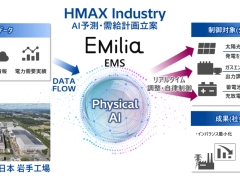 日立製作所は、トヨタ自動車東日本の岩手工場に次世代ソリューション群「HMAX Industry」のEMSである「EMilia」を納入したと発表した。試運転調整時においてインバランス率1%前後という極めて高精度な運用を達成したという。