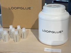 博展、we+、セメダインは海藻由来の水系接着剤「LOOPGLUE」を共同開発した。天然の粘着成分を活用し、接着力と水で容易に剥がせる易解体性を両立。資源調達費と製作人件費で15%削減を見込む。
