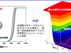 東レリサーチセンターは、温度と時間、酸素濃度などのさまざまな条件下におけるプラスチックの分解挙動を予測する解析手法を開発した。プラスチックの熱分解に伴う重量減少の実験データを基に構築した数式モデルを使用する。
