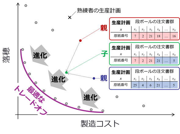 段ボール生産計画に進化計算を適用 さらに応用先を広げ生産工程DXを推進:進化計算の最新動向を知る(2/3 ページ)