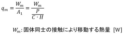 固体同士が接触しているところの熱流束qmは次式で表されます(式10)。mは“metal”のmです。