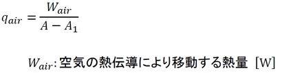 接触していないところは空気が充満しており、かつ空気に流れがないとすると、空気の熱伝導による熱流束qairは次式で表されます(式11)。