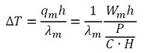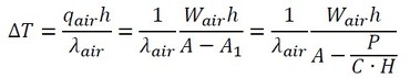 空気による熱伝導部の温度差は次式で表されます(式14)。ここのhは熱伝達率ではなく、図10に示したギャップの寸法です。