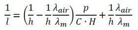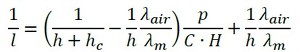 修正量として間隔hを大きくし、次式とします(式21)。実験結果から、hcはhと同程度か10倍ぐらいだそうです(参考文献[1])。