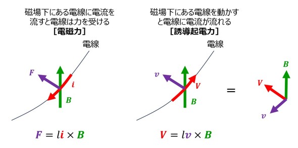 となる。vは電線の速度、Vは発生する起電力である。この式を誘導起電力の式という。