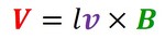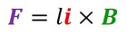 となる。Bは磁束密度(磁場の強さ)、iは電流、lは磁場下にある電線の長さ、Fは発生する力である。式中の(×)は外積であること意味し、その定義を図6に示す。すなわち、発生する力の方向は磁場の方向と電流の方向に直交している。なお、磁場の方向と電線の方向は直交しているとは限らない。上記の式を電磁力の式という。