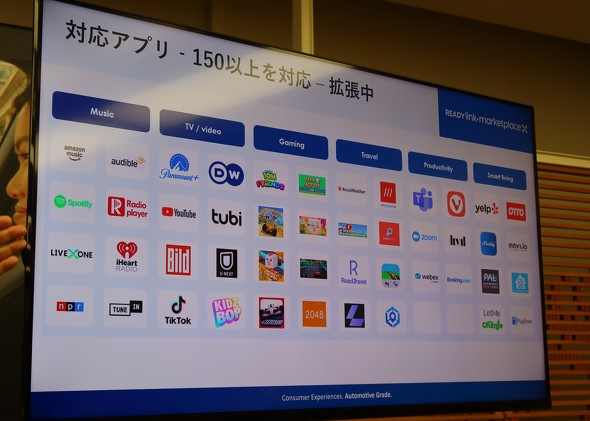ハーマンのアプリストアは、グーグルなどアプリ販売のプラットフォーム企業を間に挟まず、ハーマンとアプリ開発者が直接やりとりしてアプリのラインアップをそろえている。市場に出ている人気のアプリを中心に150種類以上のアプリを取り扱い、今後も追加していく。日本で人気のアプリもアプリストアに並べていく。