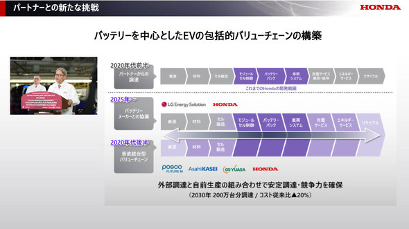 ホンダはEV専用の完成車工場やバッテリー工場の建設、材料メーカーとの共同出資会社設立など、北米でのEVの包括的バリューチェーン構築に向けた検討を開始した。