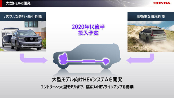 大型車のニーズが高い北米には、2020年代後半の商品投入を目標に大型車向けのハイブリッドシステムを開発する。力強い走行性能やけん引性能と環境性能を両立する。