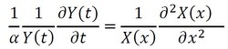 両辺をX(x)Y(t)で割り算します(式8)。