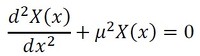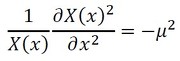 式8の左辺は時間だけの関数であり、右辺は座標だけの関数であるため、両者が常に等しいことになります。両辺はある定数であるはずです。それを−μ2とすると、以下の2つの式(式9、式10)が出来上がります。