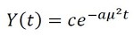 1階微分しても同じ形になる関数といえば、y=exでしたよね。そこで、関数の解としてY(t)=ce-aμ2t(※1)を基に話を進めましょう。