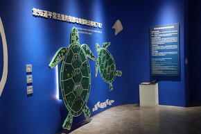 1つ目は、カメの展示です。甲羅の扉を開けると、中にはプラスチックごみが入っており、「海でもしゴミを捨ててしまった場合、それはどこに行くと思いますか?」というメッセージが添えられています。海に捨てられたごみの一部をカメなどの海洋生物が誤って食べてしまう……という現実を分かりやすく伝えています。