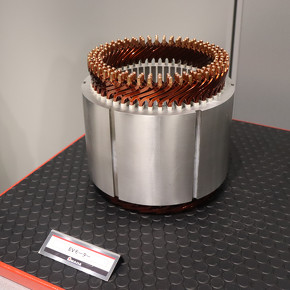 EV用モーターの小型化、高トルク化、高効率化のニーズが高まっており、モーターは従来の丸線を使った巻き線方式から、平角線を用いて端部を溶接し、占積率を高めた平角線方式のモーターが主流になりつつある。平角線を使用したモーターには、1個当たり200点前後の溶接が必要になるという。そのため溶接スピードに加え、溶接時のスパナを抑制した加工が求められている。ALCIS 1008eは銅の溶接に最適なブルーレーザーを搭載しており、検証に活用されている。また、ブレーキディスクローターの表面に超硬系の金属粉末を積層造形することで、ブレーキの耐摩耗性を向上させ、微細粒子の発生を抑制する検証も行っている。